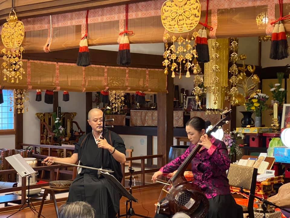僧呂でもあり二胡奏者でもある川野さんご夫妻のデュオ「しゃん・ふう」さんが