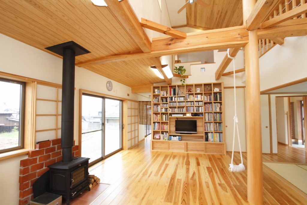 木の温もりと解放感、心安らぐ癒しのリビング