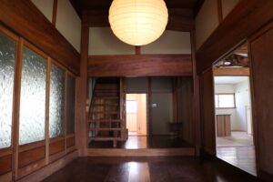 玄関を入ると立派な梁が印象的な古民家を購入、リフォームされた片山さん。