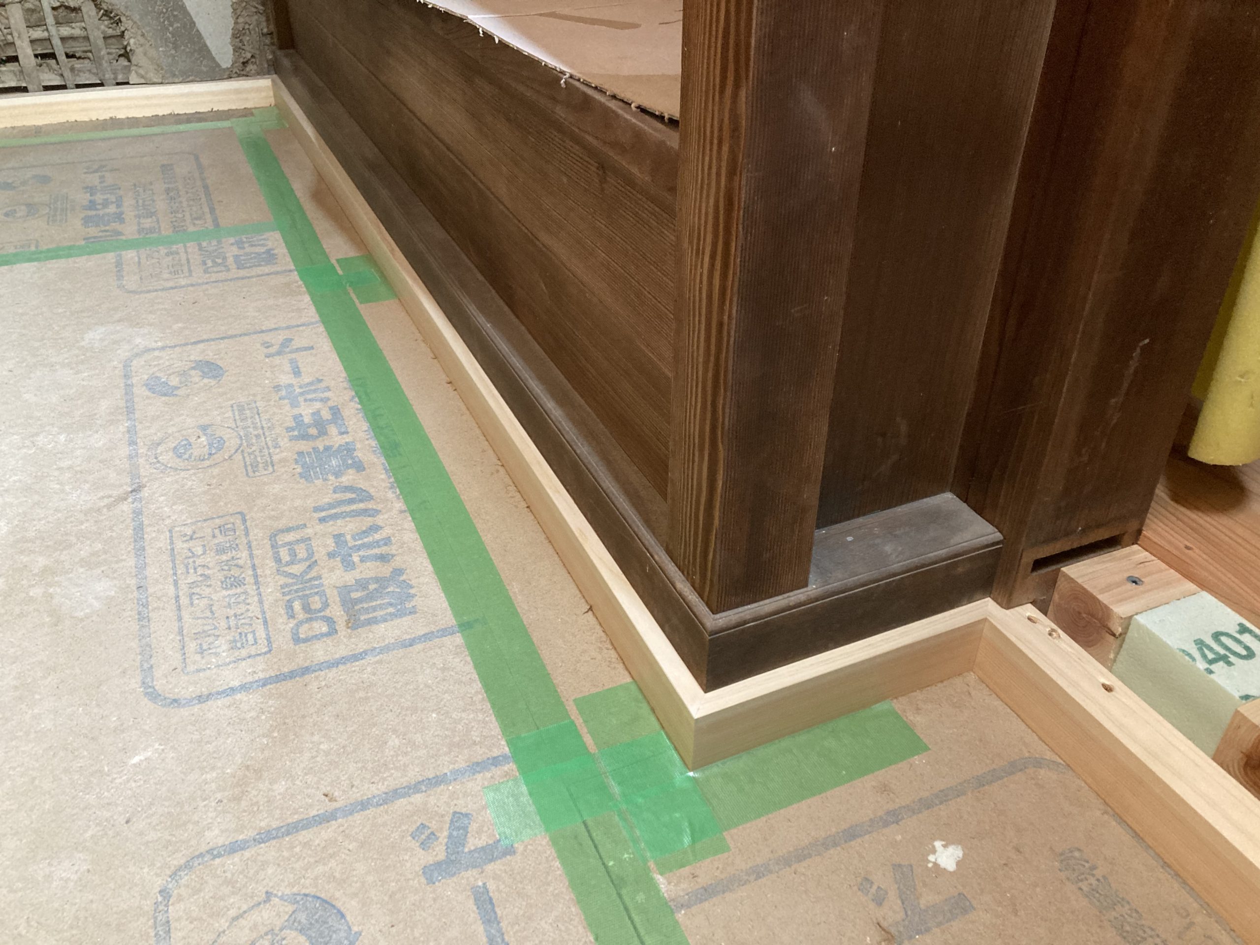 残念ですが、床の関係で再利用ができないため、親方が新しい巾木を作り直していました。