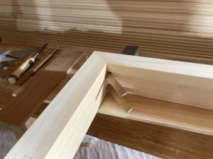 仕口は車知栓締めと呼ばれる留め仕口を加工されています。