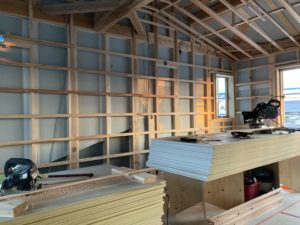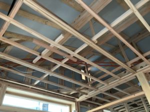 天理市の家新築工事では、天井と壁の下地が終わり、