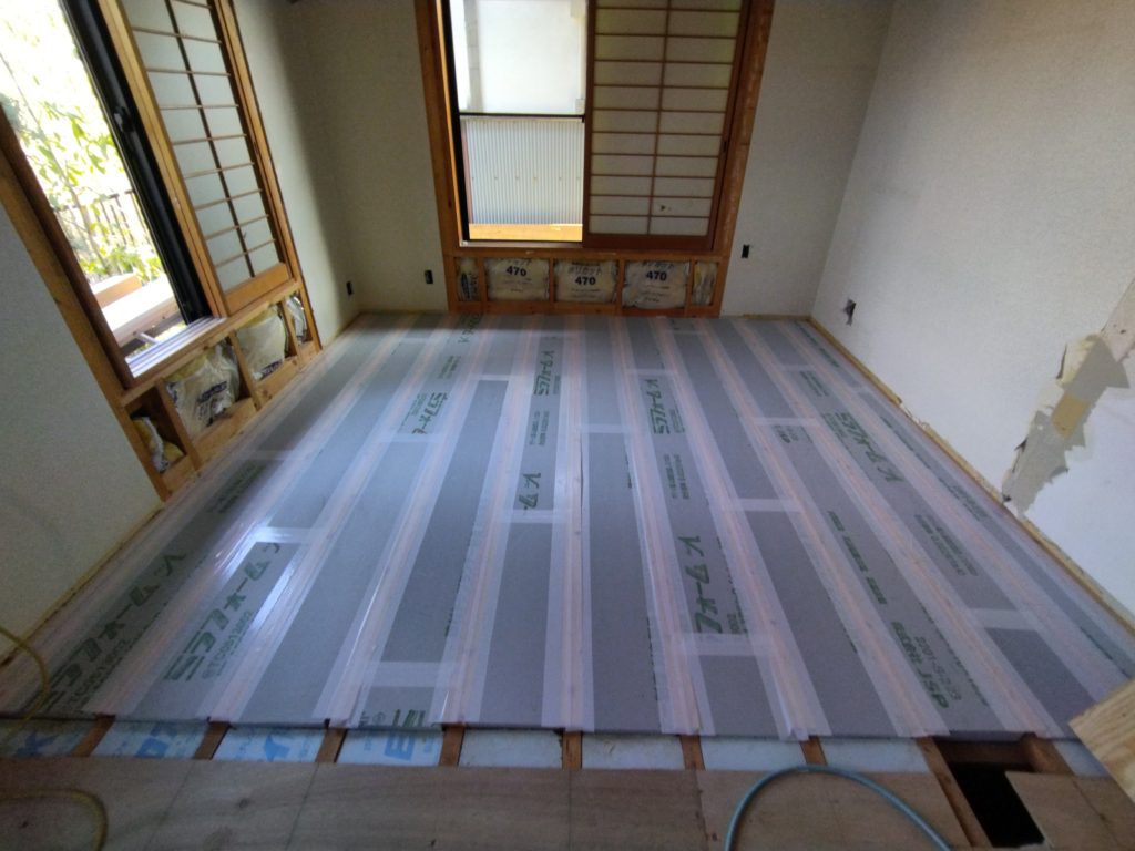 この上に床板を張っていきます。現在張っているのは捨て貼りという下地のものです。