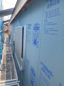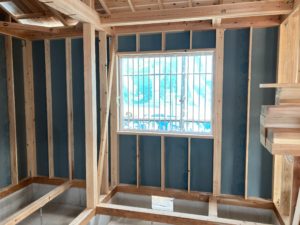 雨が多くなる季節ですが、屋根工事とサッシの取付が完了し、