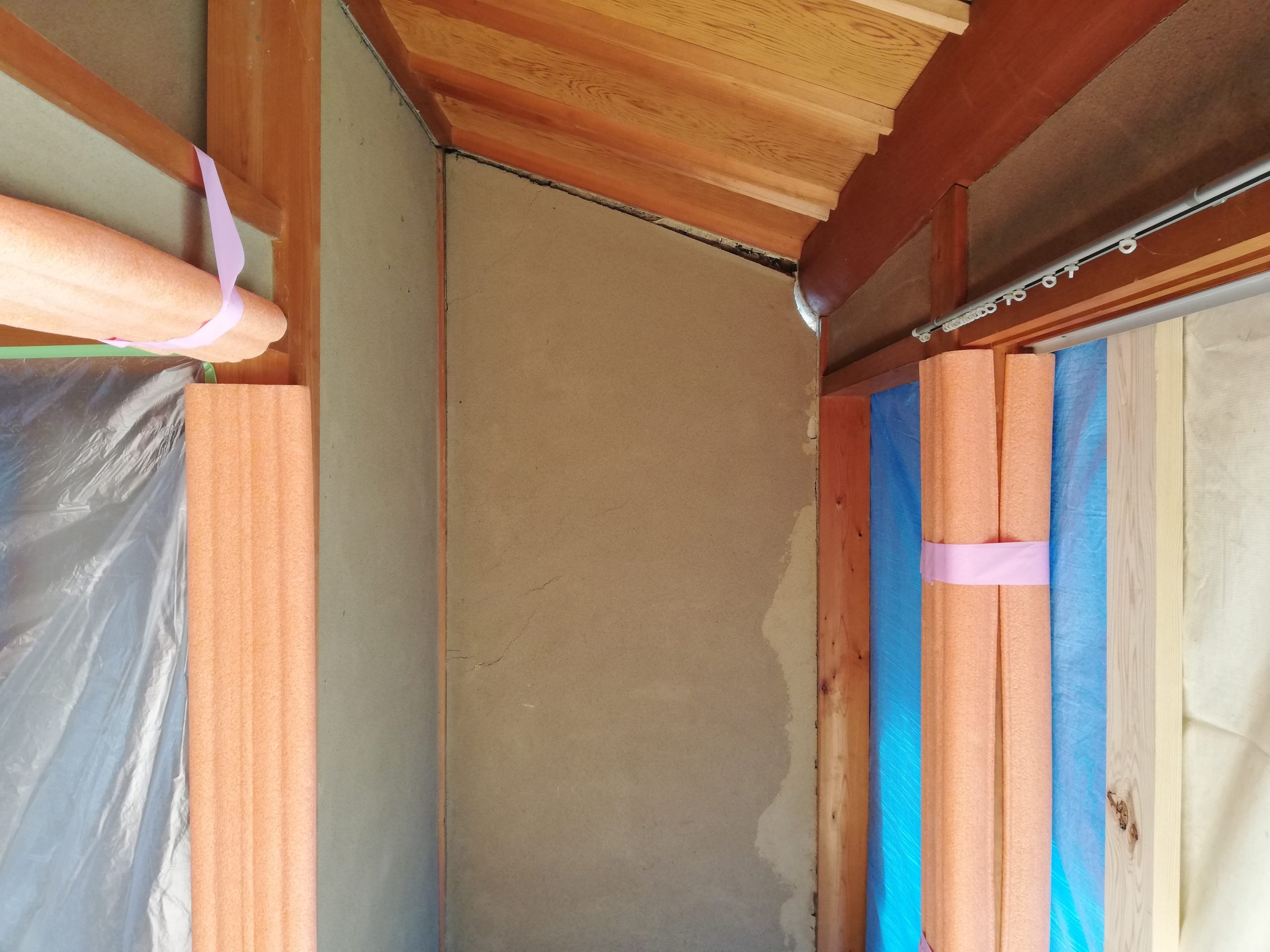 写真はジャッキアップ完了後に上がった梁と壁のすき間を撮影したものです。