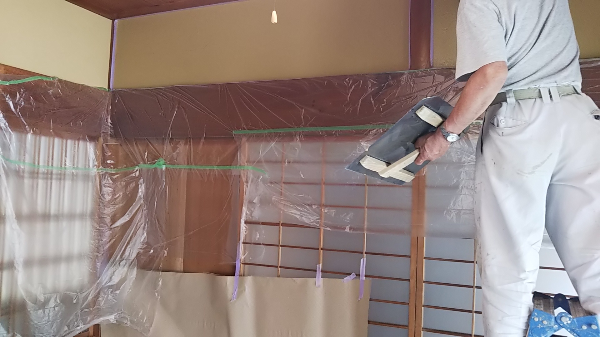 工程を見ていました。仕上げ塗りを2回し、その間に