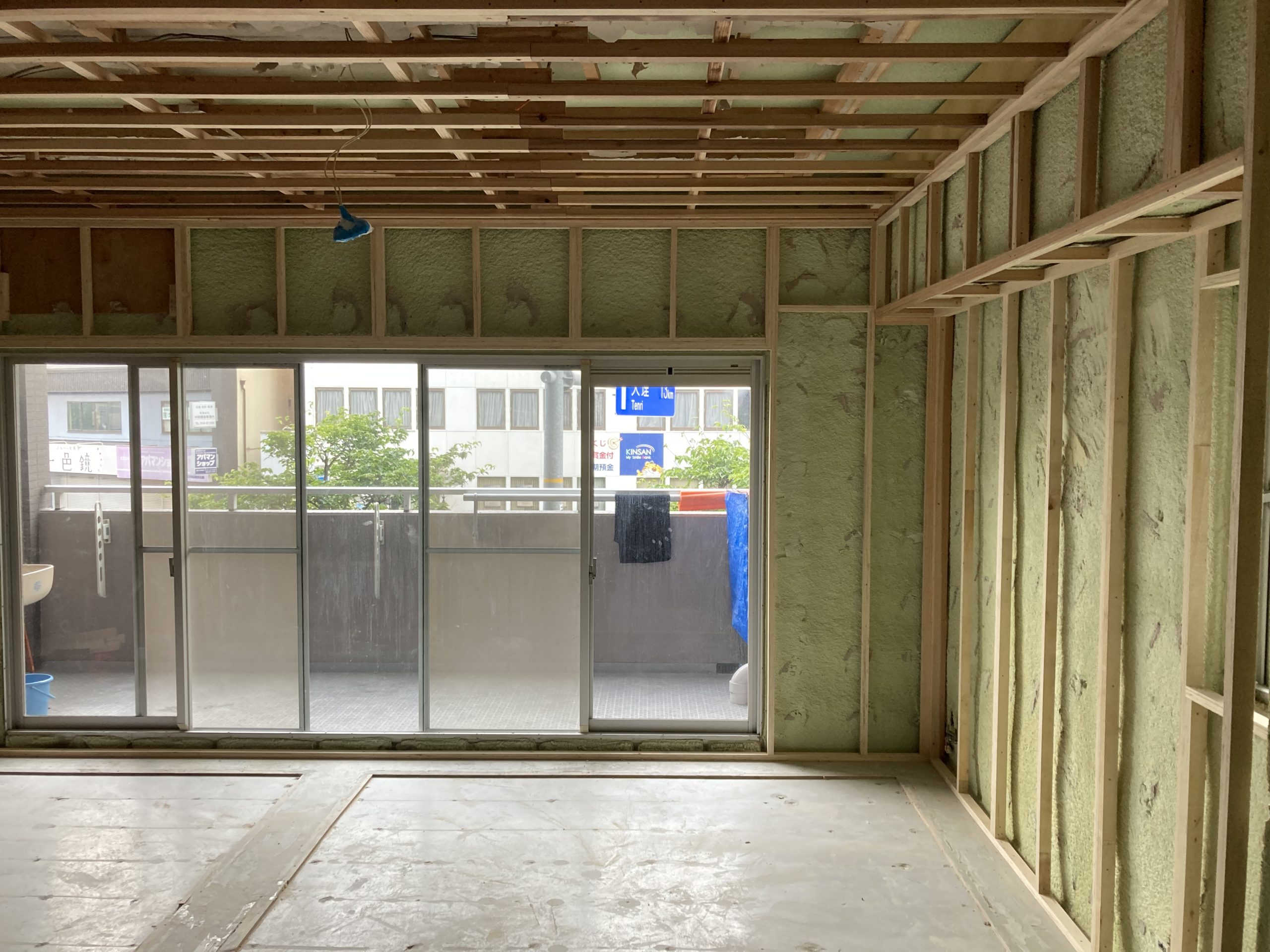 今回は既存下地でも使えるところは生かし、新設下地と繋ぎ合わせたり、吹付断熱材があったりと、さらに難しく感じる部分もありました。