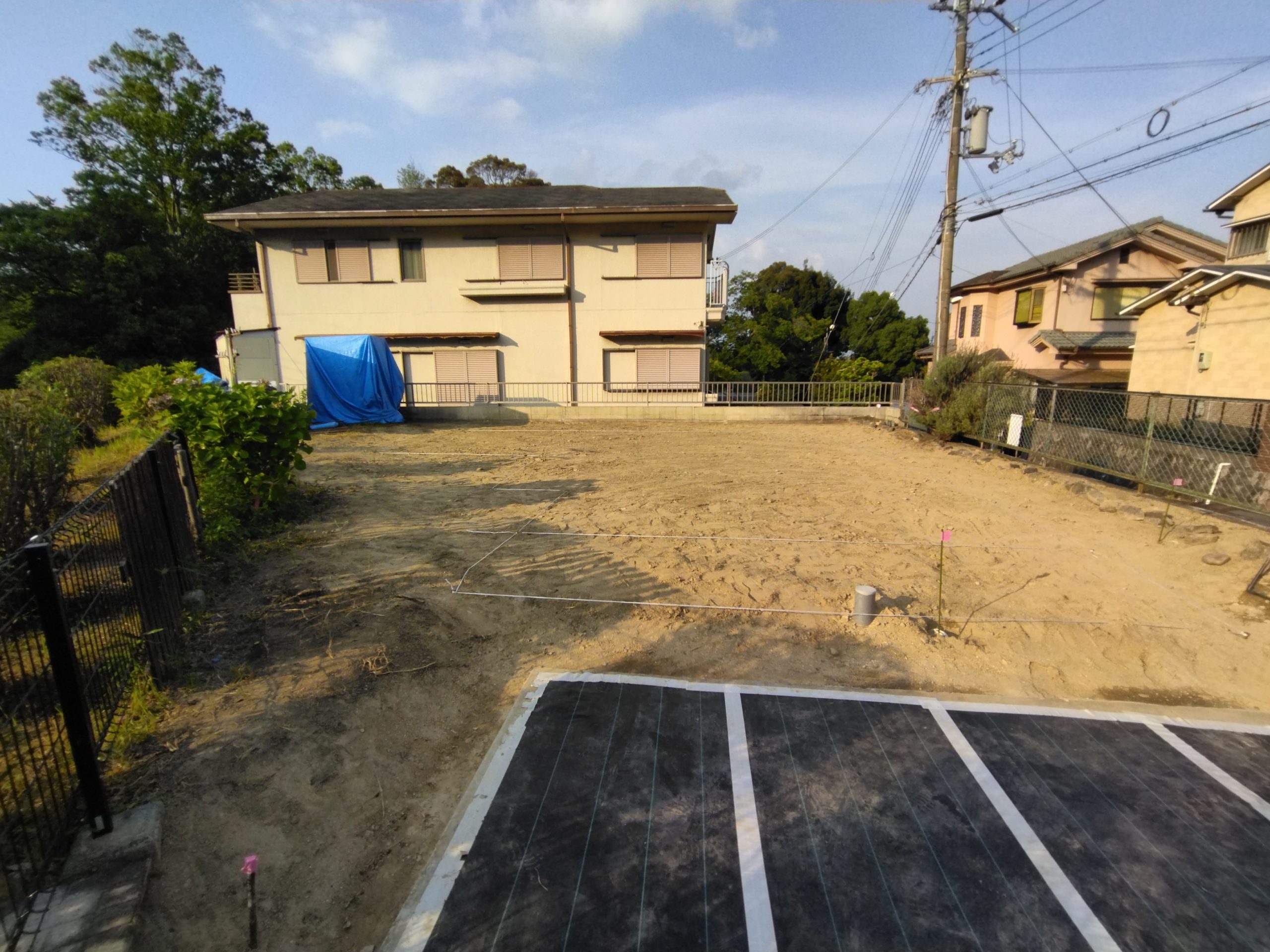 解体後には地縄張りを行い、建物の配置がわかるようにしています。