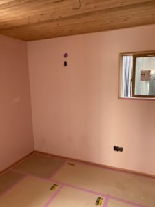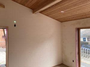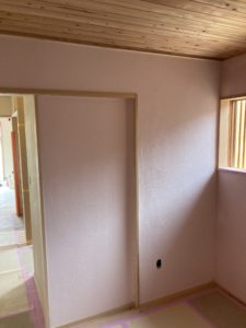 畠田の家新築工事では、室内の漆喰の工事が完了しました。