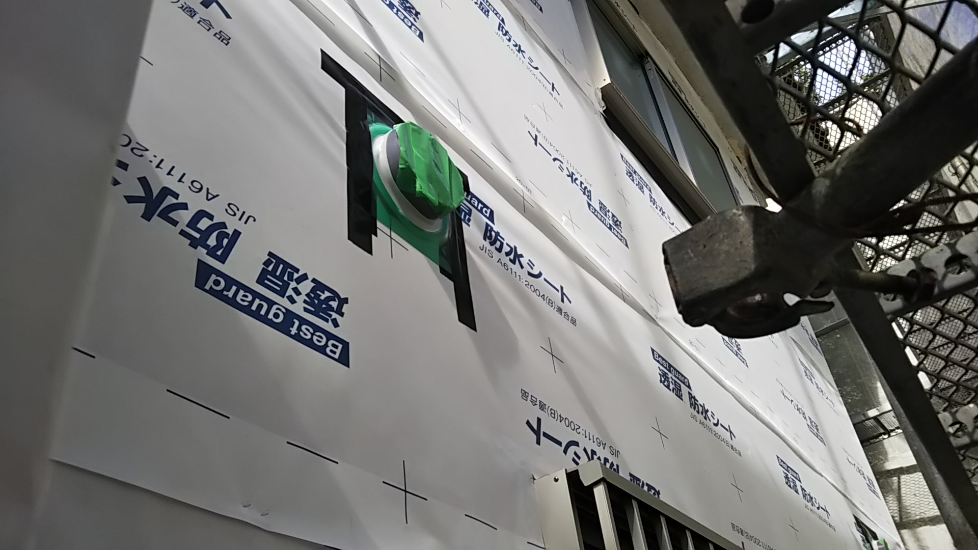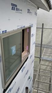 しています。特にサッシ廻りの防水処理と 換気扇等貫通部などを確認していきます、 断熱材を張ると見えなくなるので 慎重にしていきます。