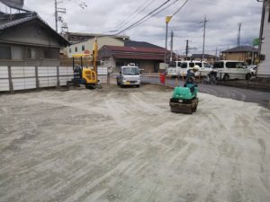 基礎工事のはじめは、コンクリートの下になる部分に砕石を敷き詰め、