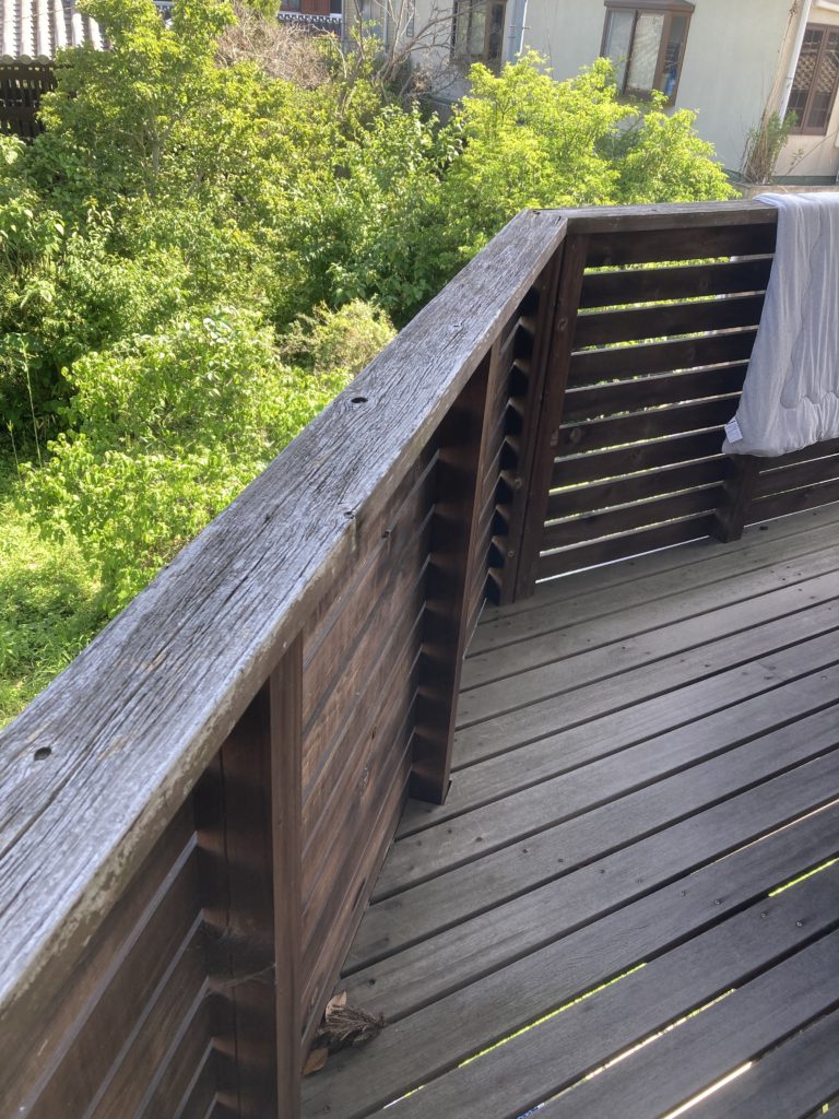 外部の木製バルコニーとウッドデッキは少し傷みがありましたが、