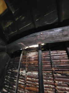 屋根の上からではなかなかわからなかったのですが、小屋裏に登ってみると外部の日差しが差し込みよくわかりました。