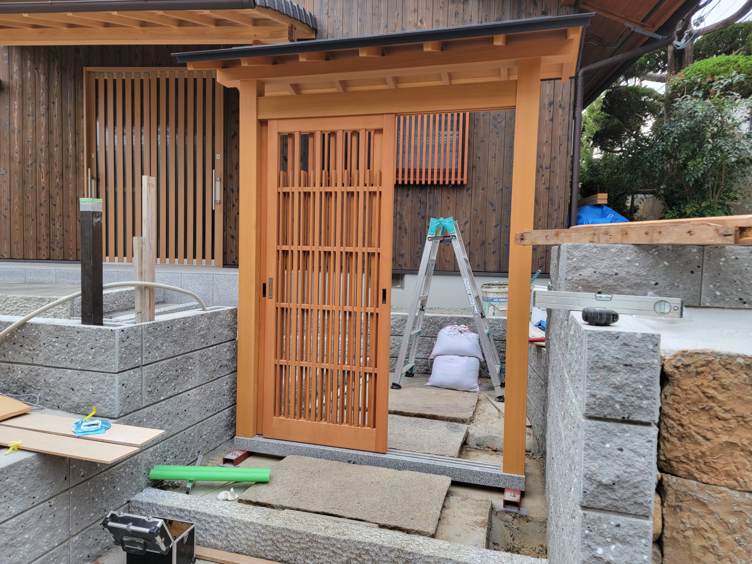 しかし、実際に数奇屋門を設置する現場を見ると、建物だけが建っているよりもずっと外観がかっこよく見えます。