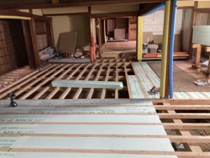 香芝のお住まいの工事もとても広いお家すので、やっと桧の根太組が完成してこれから床の断熱工事になっています。