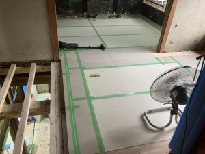奈良市のリフォーム工事では、床張りを進行中です。