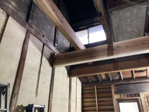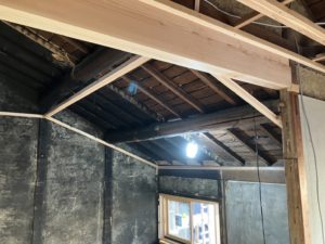 木造の構造をしっかりもたせるために、補強梁