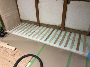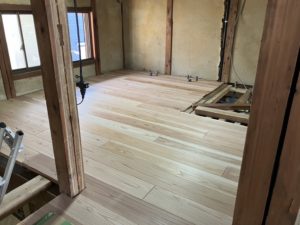桧の芯持ち材で6㎝角の根太を、取り付けること