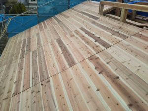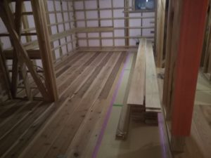 外壁の構造用合板と断熱材、石膏ボード以外は新建材や集成材