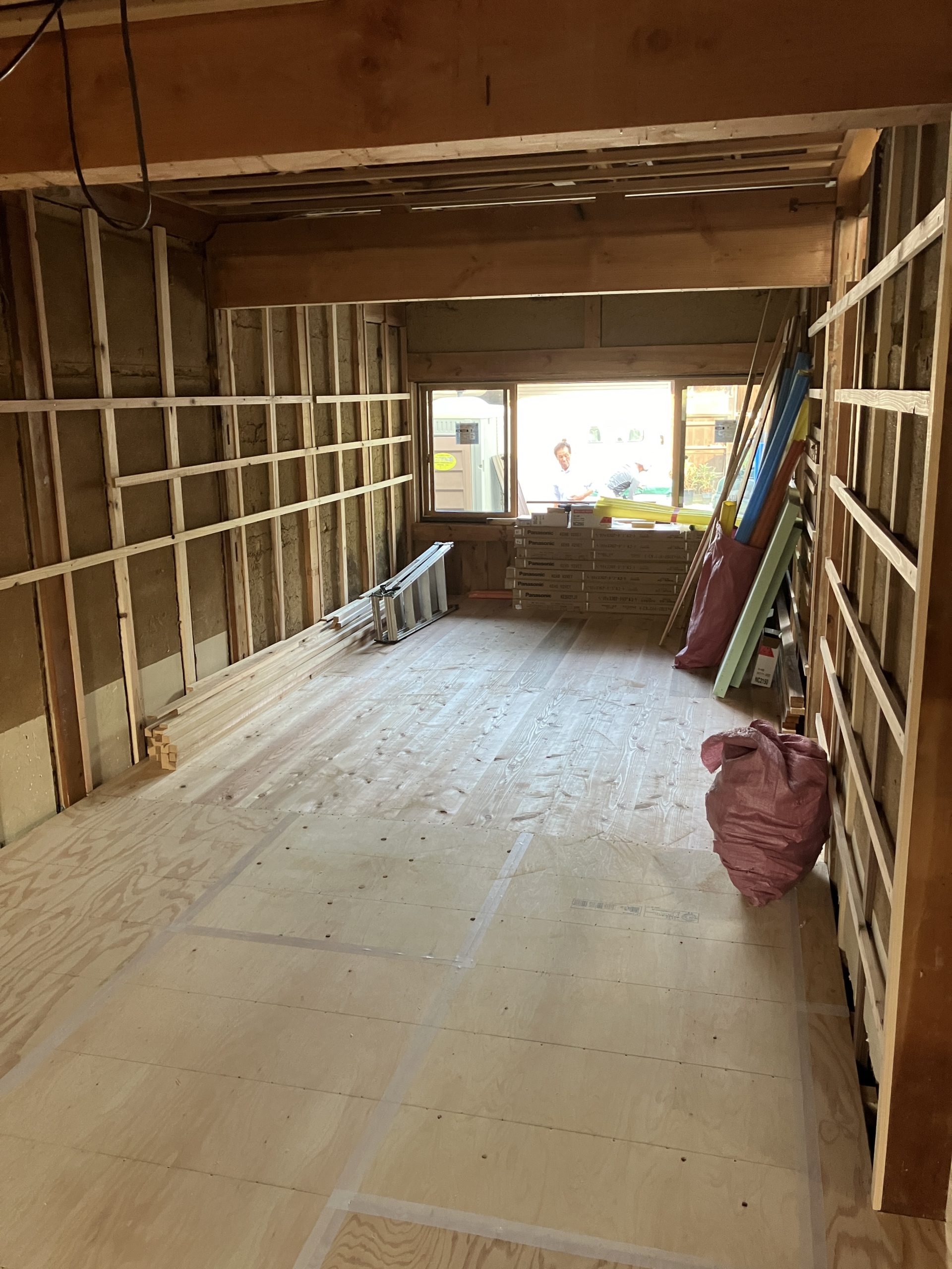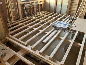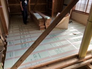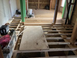 既存の床を解体し、下地諸共やり変えるとなると、一時的に床はなくなります。その期間は大工仕事をしていて結構身体が疲れます。