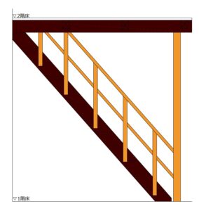 明るい茶色に着色している箇所が新たに施工する手すりの材料になります。