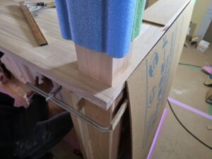 今回は洗面化粧台、カップボード、キッチンカウンター、トイレ手洗いといった水回りはタモ材で作成をしていきます。