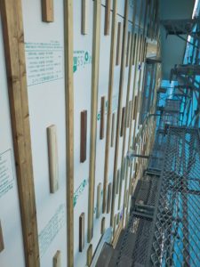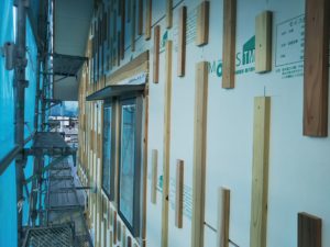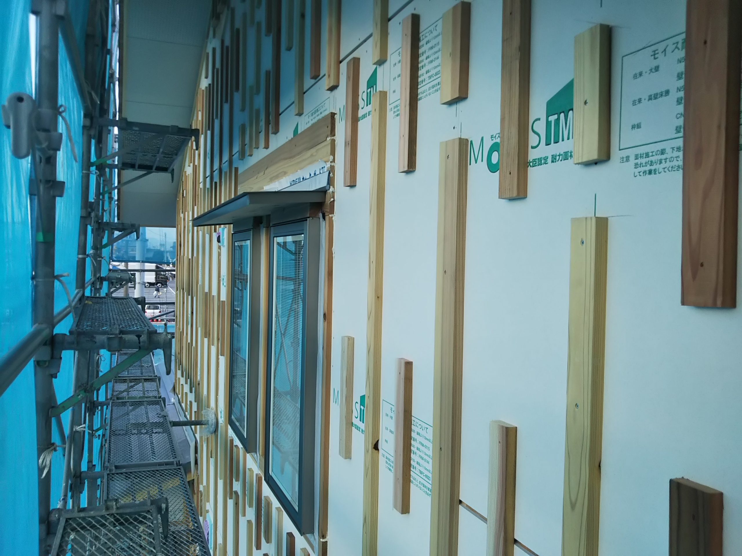 今回の外壁は左官仕上げ、その下地である縦の通気胴縁は