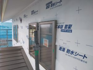 まずは、雨の進入を防ぐために透湿防水シートの施工。