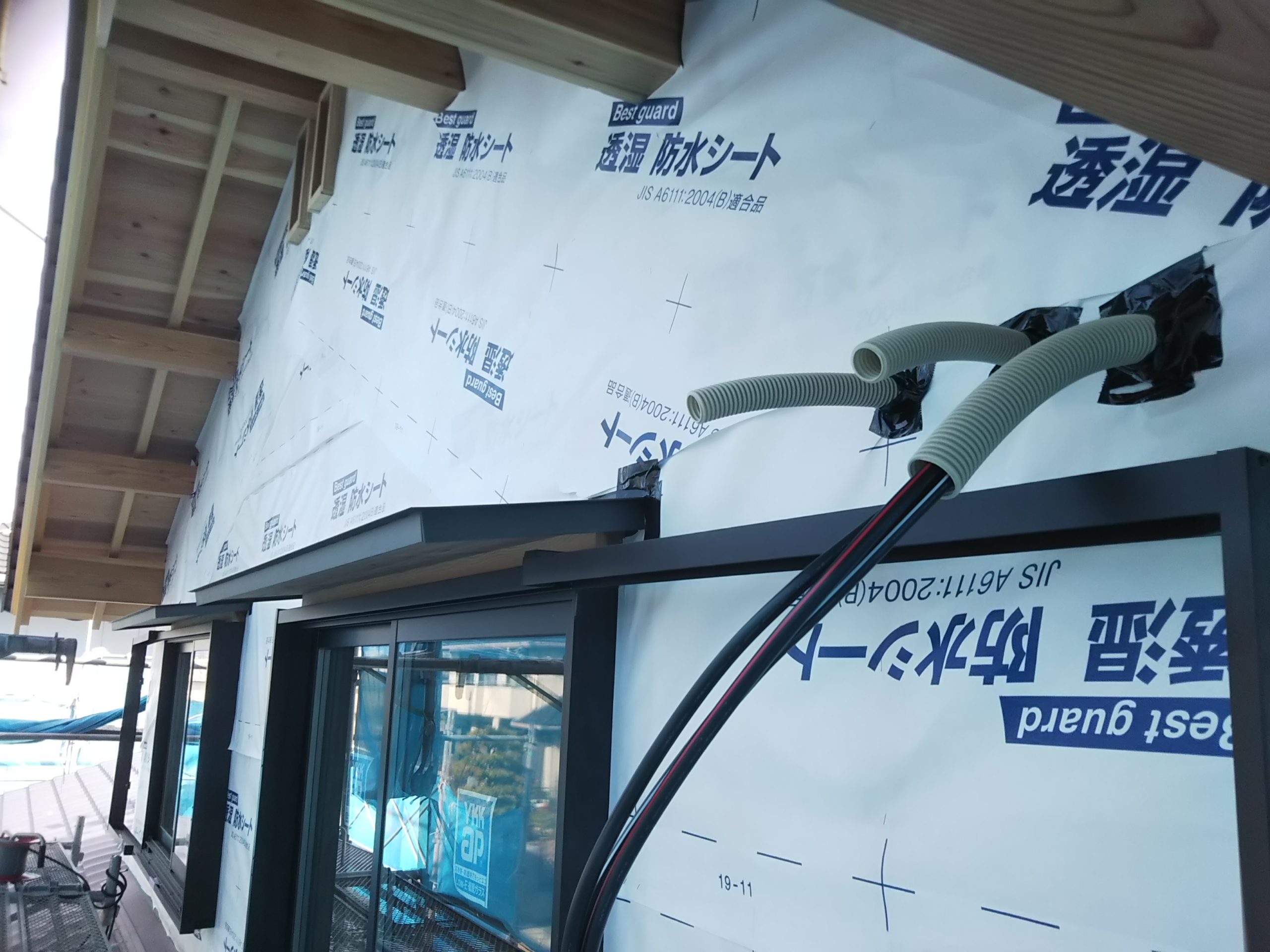 まずは透湿防水シート貼りから。