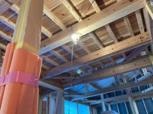 構造の検査が終われば、屋根と断熱材の施工を始めていきます。