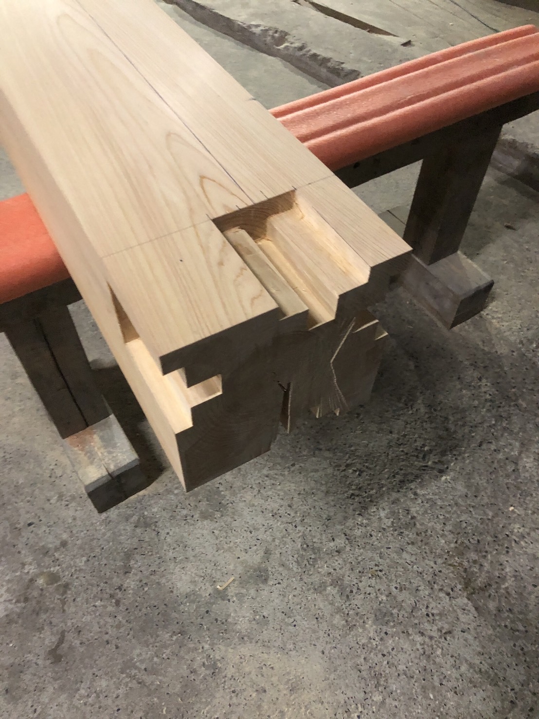 先日から吉野で新築のお家の刻みをしています。土台から始まり、梁、母屋、柱と刻んできました。