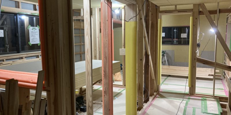 輪和建設の森下です。 矢田町の新築の現場では、建具枠を入れて行っ…