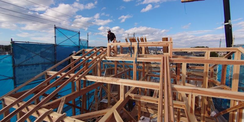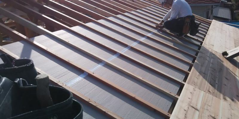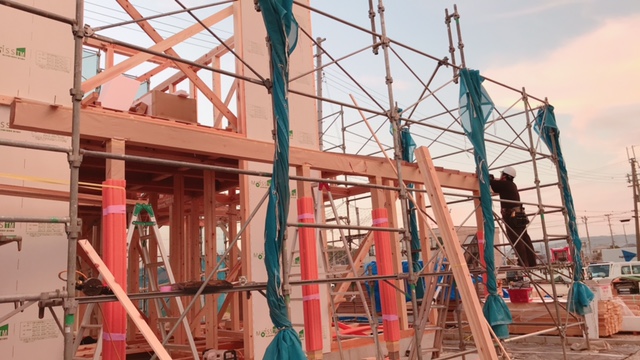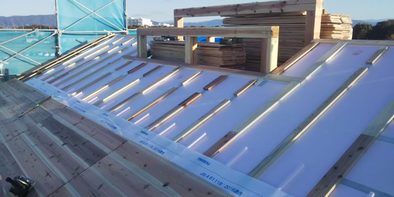 輪和建設の戌亥です。 着工中の現場で、ルーフィングの施工が完了し…