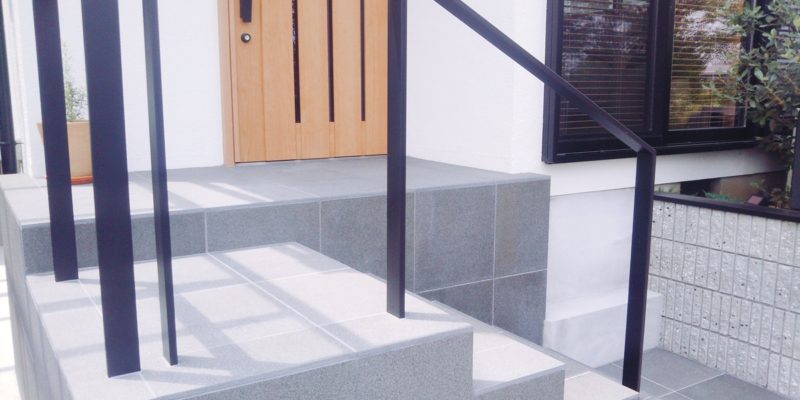 玄関ポーチの石と手すり