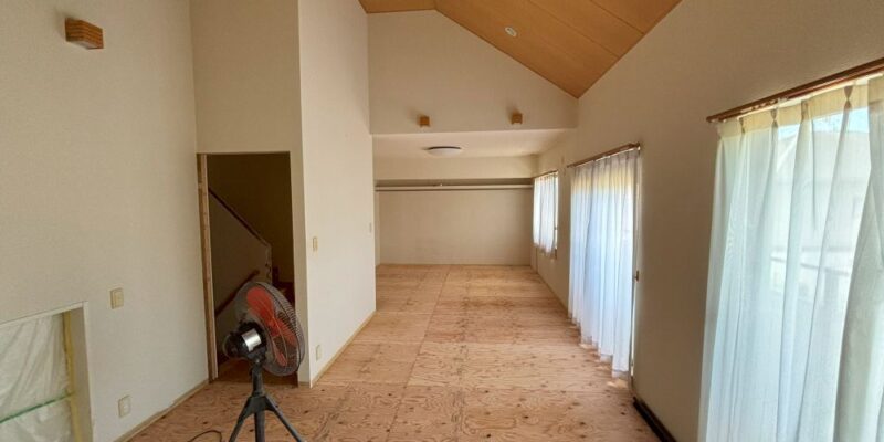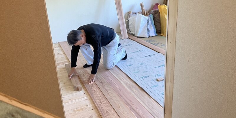 設計の阿部です。 橿原市の改装現場では、床貼がどんどん進められて…