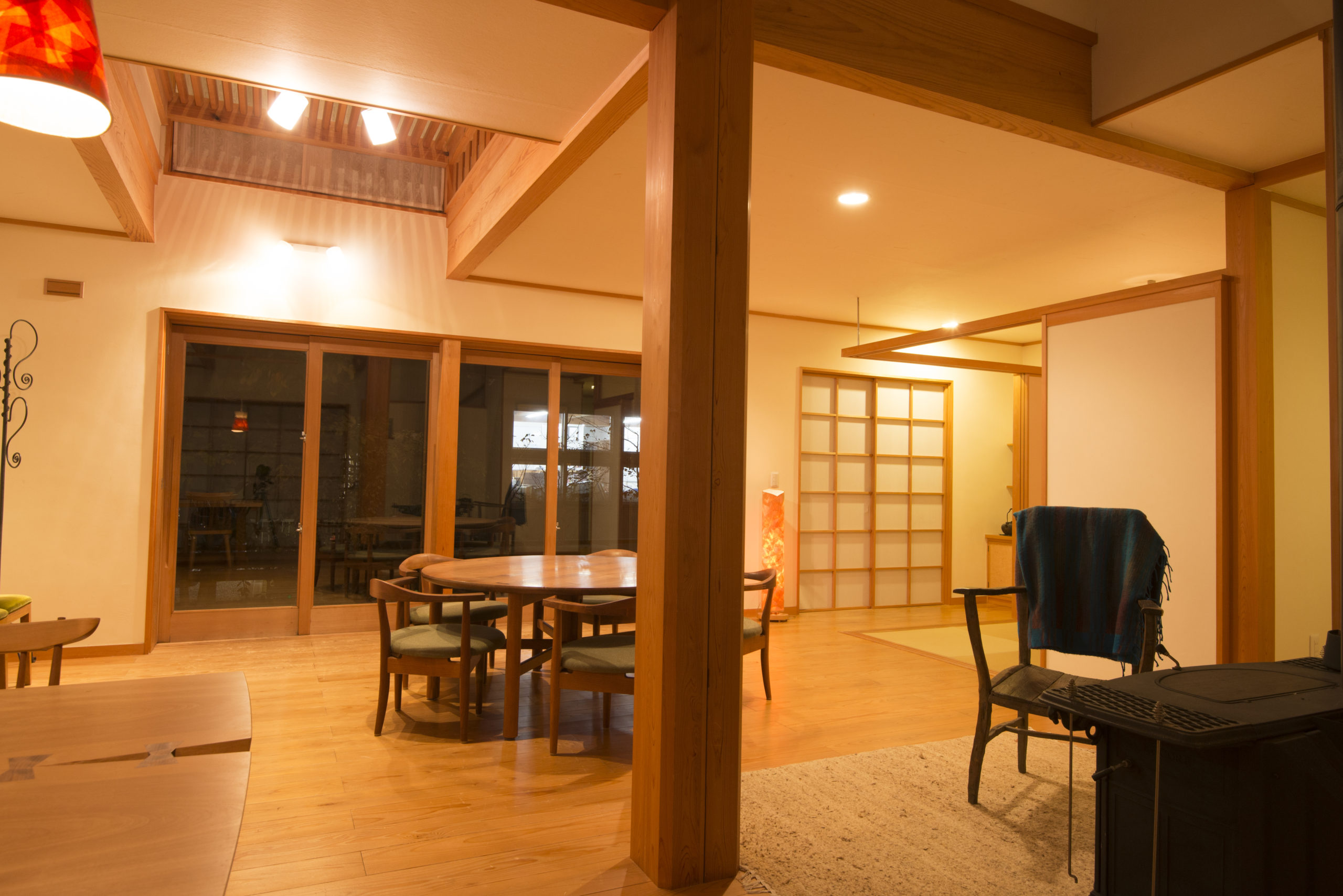 大黒柱は天然乾燥させた八寸(約24㎝)のヒノキで樹齢150年くらいです。
