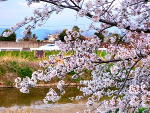 会社の前の富雄川沿いの桜が満開です。