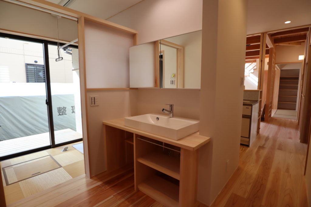 洗面所・脱衣室は南側隣地の家と家の間の隙間からの日光が入るように考えていましたが、
