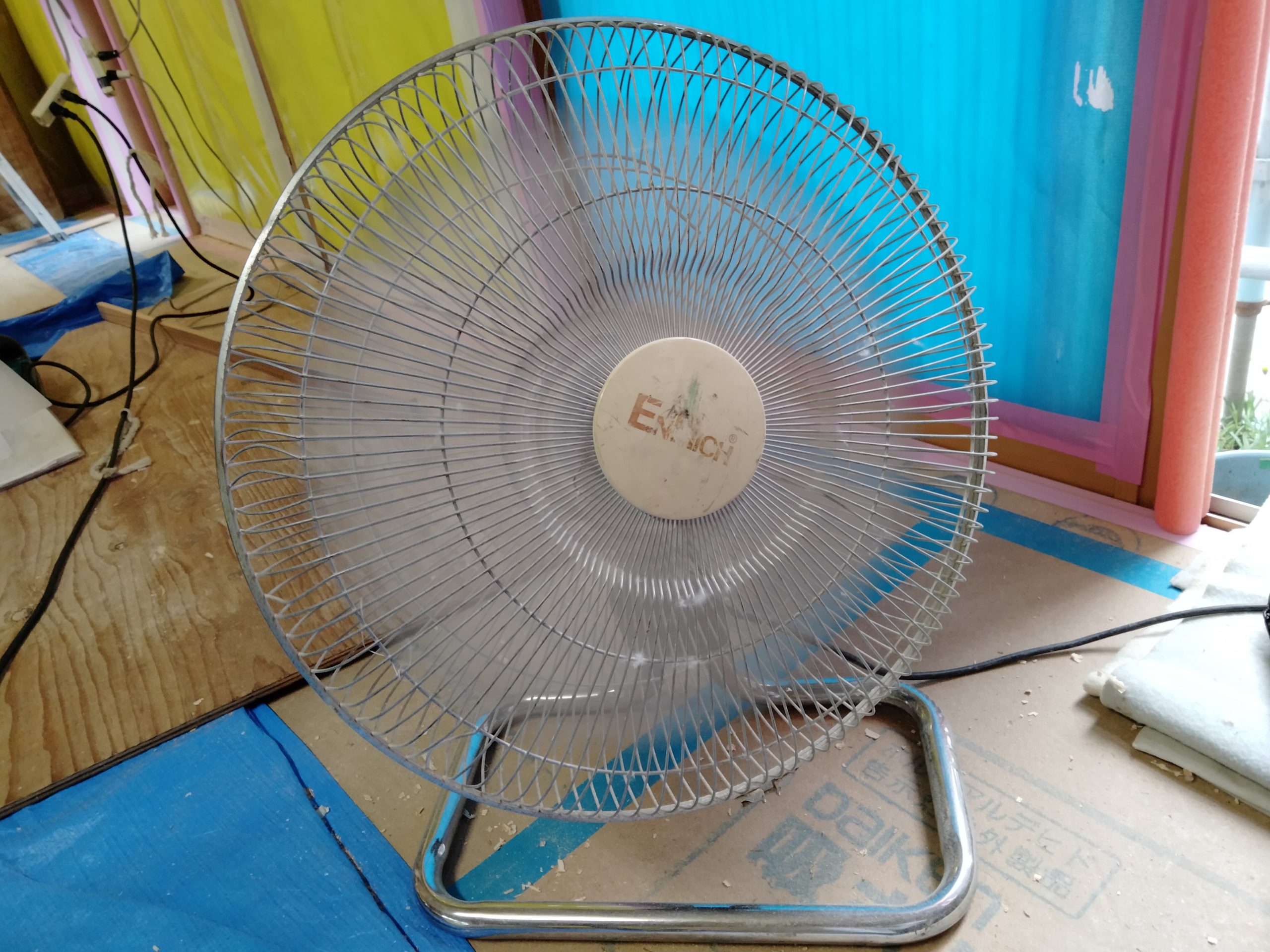 現場でも今日は扇風機を回し、