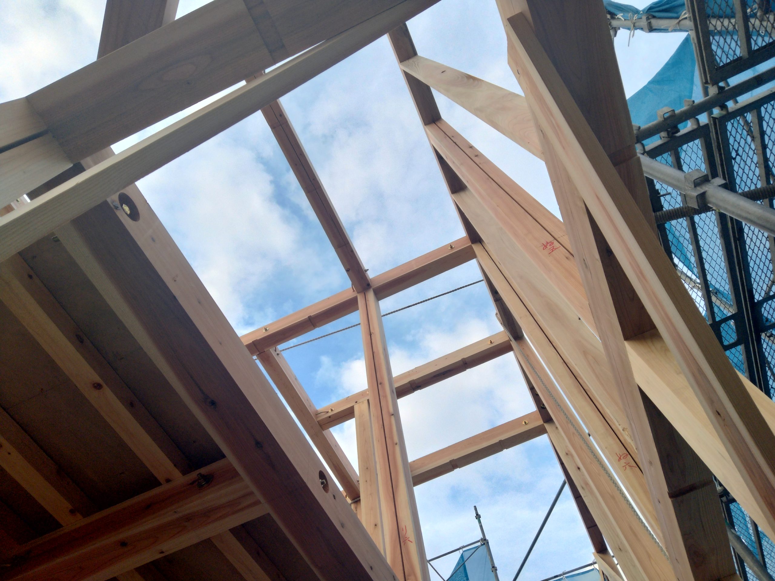 建方と言ったり、建前(たてまえ)と言ったりするのですが、これは何もないところ(基礎は据えてあります)に柱や梁などを組み上げ、家の骨格を作る工程の事を示しています。