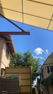 最近、加工場で無垢の木材を使った格子窓を作成していたのですが、その休憩時間にふと見上げた空がとても綺麗だったので写真に収めました。