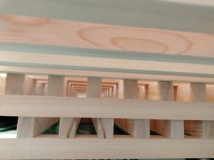 格子窓の加工も、粉塵などは舞いますが、それらは全て自然素材の木のものなので、嫌な気分には全くならないですし、身体を動かし人の手で一つ一つ仕上げて行くこの過程はとても健全で大切だなと感じます。
