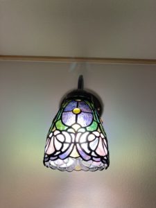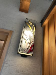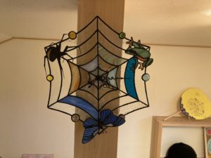 お施主様が趣味で作られたステンドグラスが所々に収まっていました。