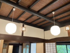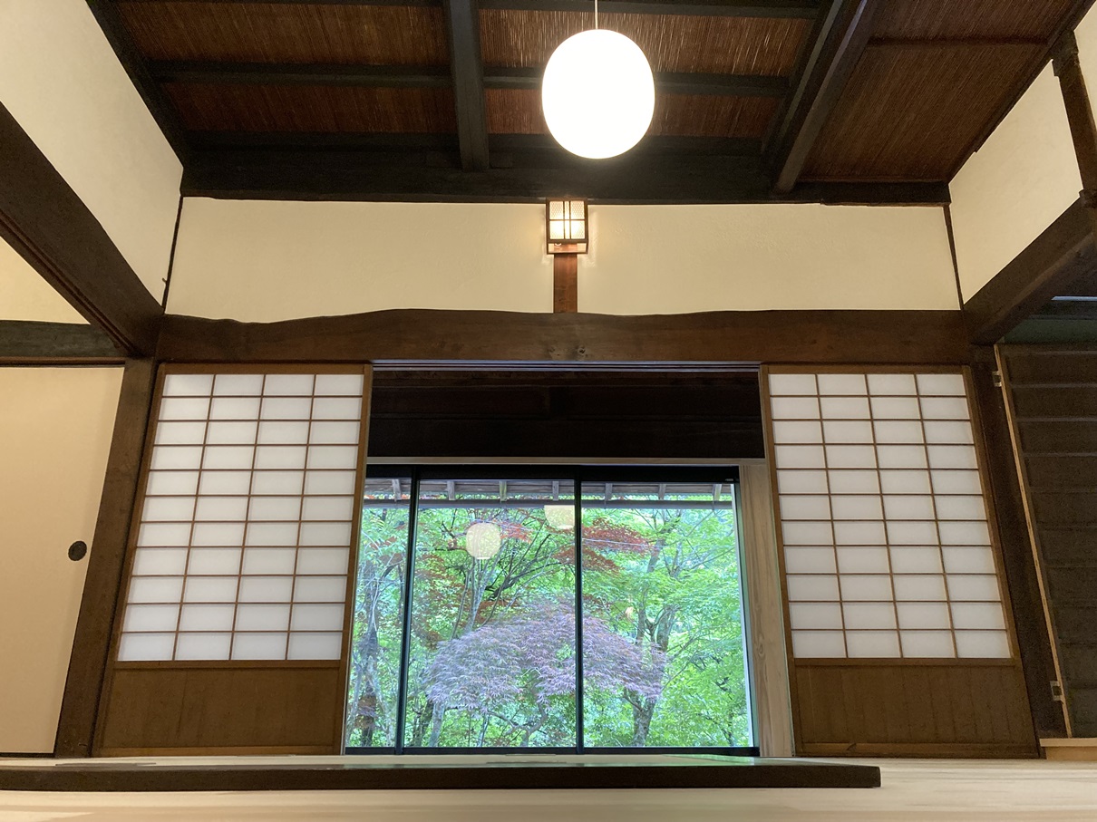 お客様こだわりの照明器具が付けられた瞬間、なんだか息を吹き返したかのように、お家がよみがえった気がいたします。新しく取り替えた木製の柱、床板、雨戸、格子などは、あえて古材にみせるような塗装をしないでそののままで仕上げています。新しいものが加わり生まれ変わったお家が、これからの年月を経てどのように変化していくのかとても楽しみです。