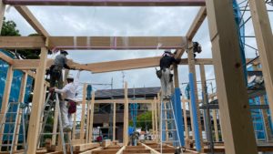 いつものごとく、無垢の木を使って大工さんが手刻みしています。
