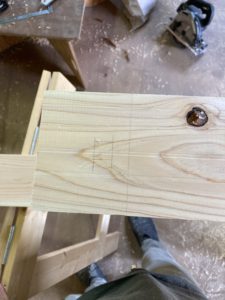 今回の墨付けでは最近仕込んだ、二丁鎌毛引きという道具を多用する事でかなりの時短になりました。