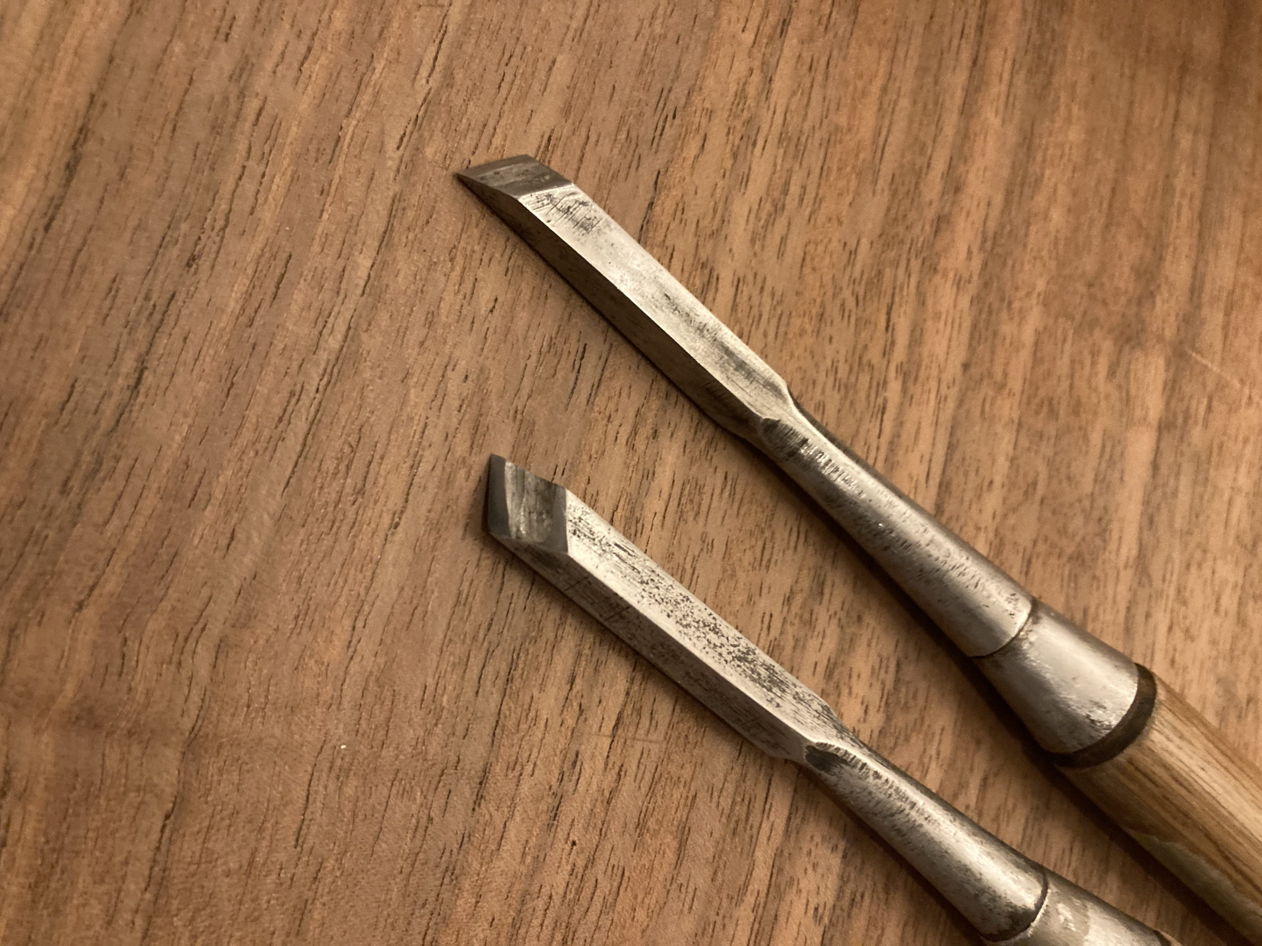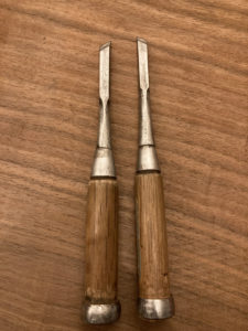 普通の鑿の刃先を斜めにしただけのものですが、作るのには意外と時間がかかります。