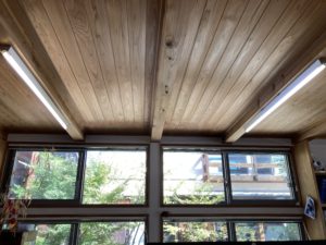 弊社事務所の床と天井は無垢で、壁は漆喰です。