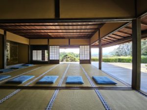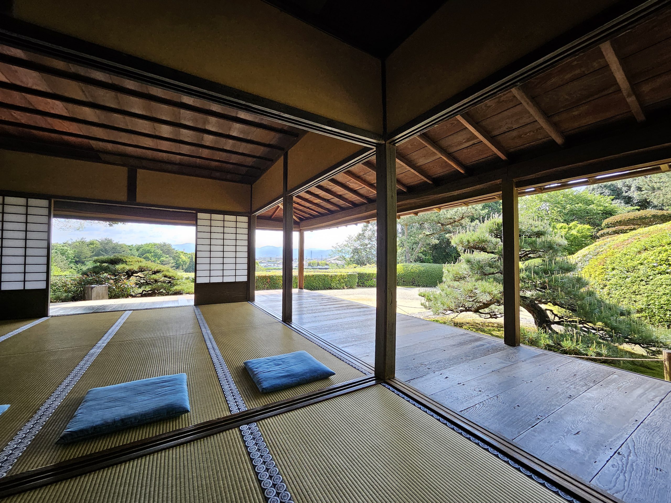 実際に写真に写っている座布団に座り、お茶をいただいたのですが、外の景色を見ながらゆっくりとお茶を楽しむというのはとても貴重な体験でした。