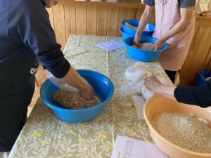 8年前にはじまった味噌作り。毎年参加くださっているメンバーはもう手慣れたもので、手際よく作業をすすめながら、1年ぶりの再会をおしゃべりしながら楽しみました。